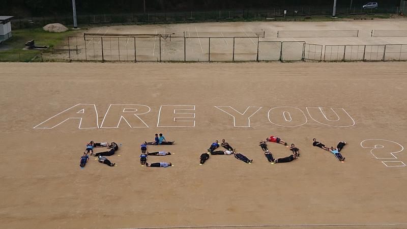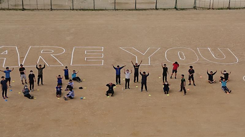 その新たな再開においてのスタートダッシュに期待を込めて、職員で人文字を作ってみました。