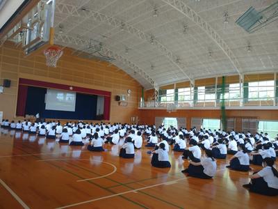 1学期期末考査終了後、体育館で3年生の学年集会が行われました。