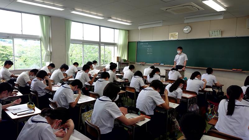 その後、先週と同様、家庭で学習した内容の確認テストが行われました。難しい問題も出題されていましたが、英語のテストでは満点を取った生徒もいたようです。