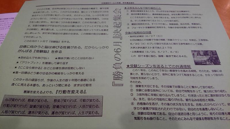 もうすぐ6月。受験生の意識を持って、家庭学習にも全力で取り組みましょう。