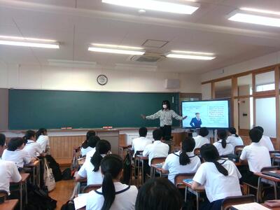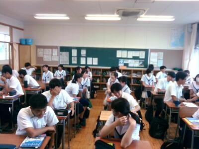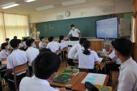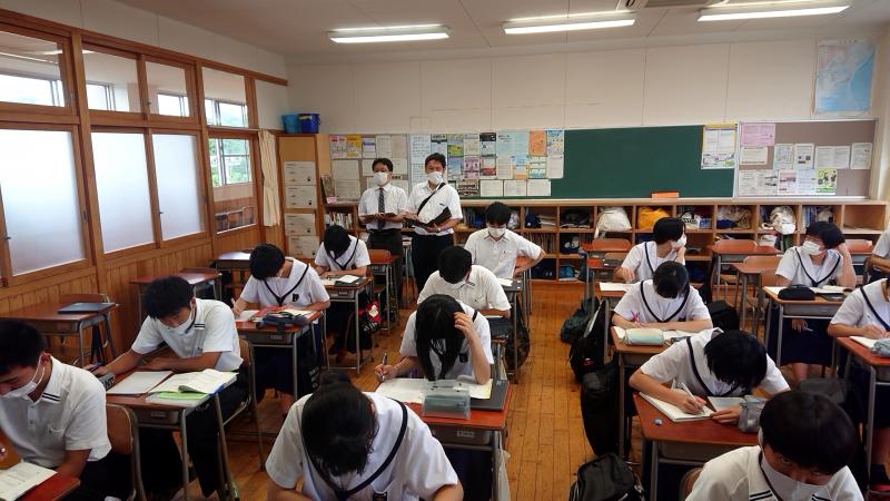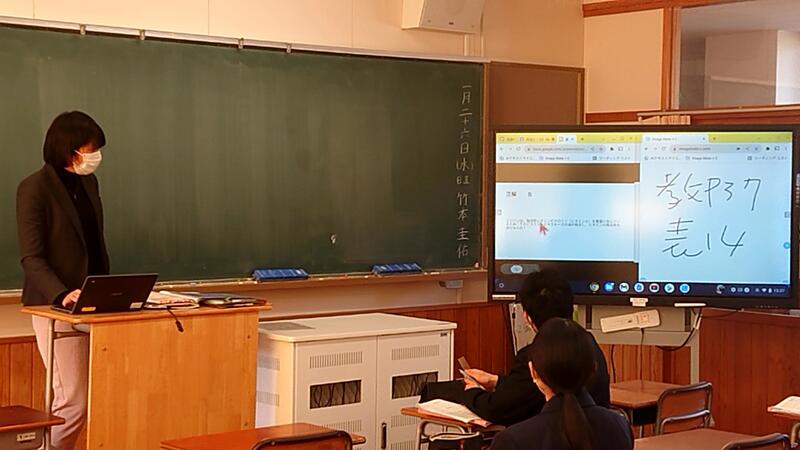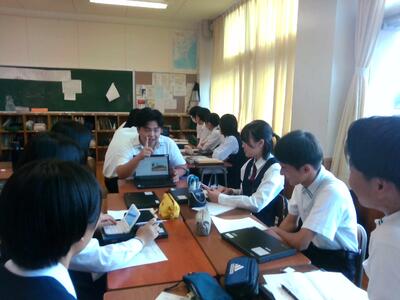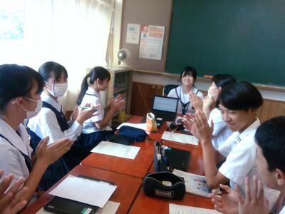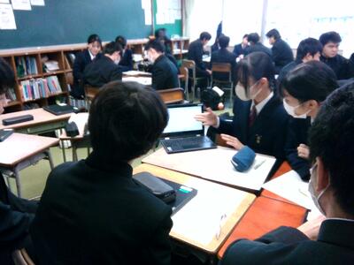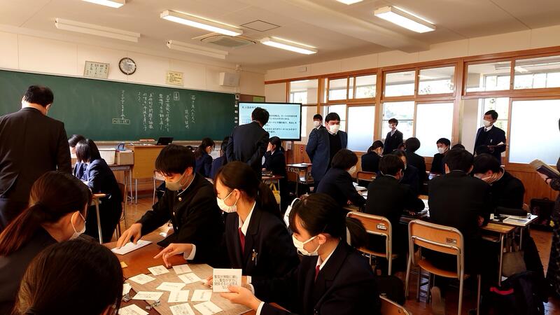 熊本第二高校のスーパーティーチャーである友田先生を始め、多くの先生方の参観のもと授業が始まり、大嶽先生も生徒たちも少し緊張していました。