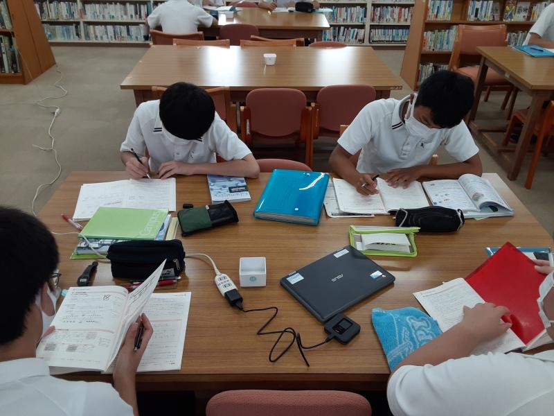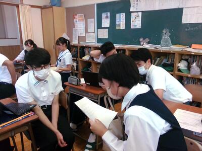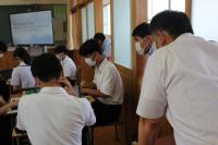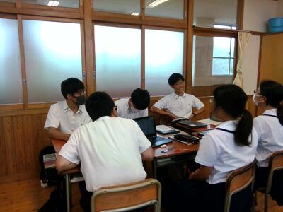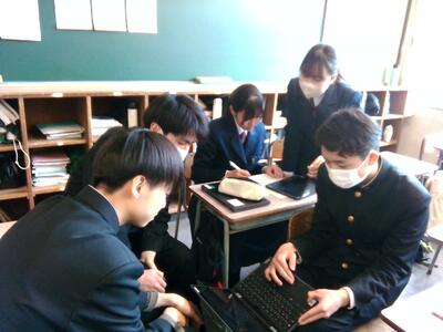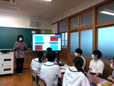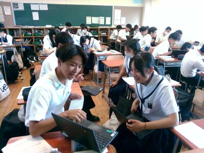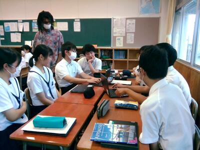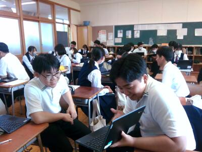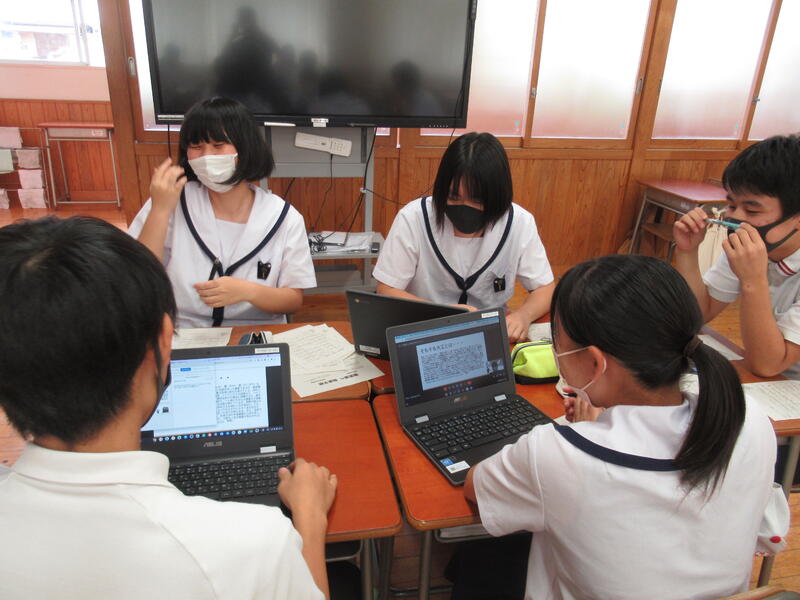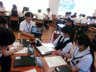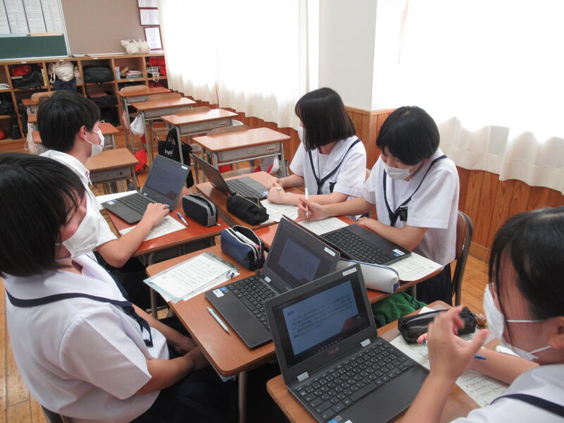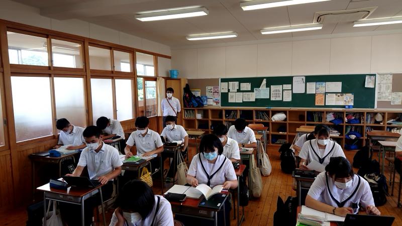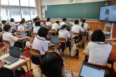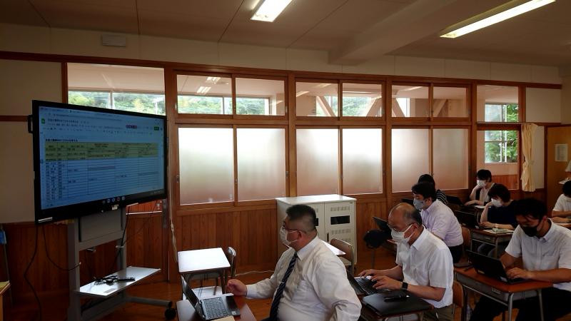 7月8日(木)、御船高校2名と水俣高校2名の先生方が、本校の一人一台端末を活用する授業を見学に来られました。