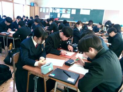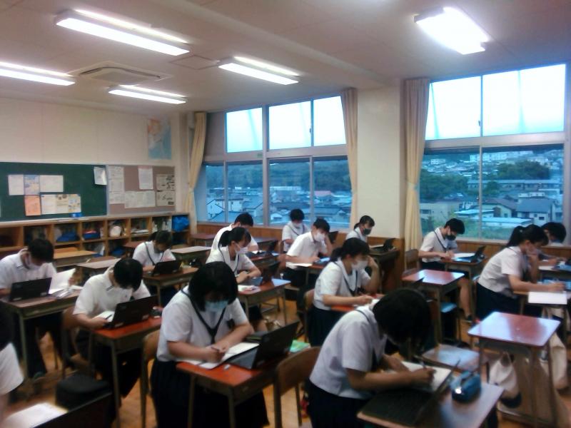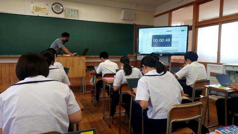 授業の冒頭に、前時の確認テストが web 上で行われました。