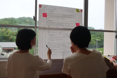 昨年度より研究授業では、指導案を大きく印刷し、教員間の意見交換を集約する工夫を実践しています。
