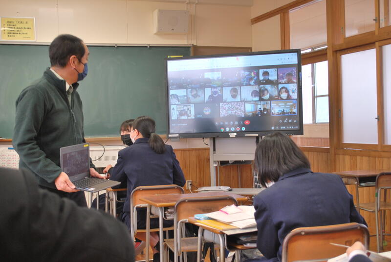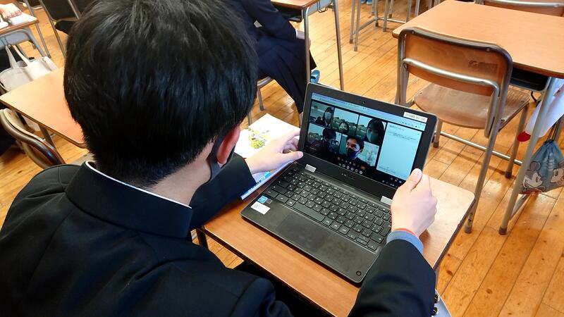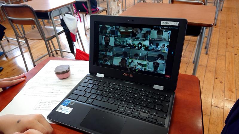本校は、個人のChromebook で参加し、他の参加者と英語を用いて交流しました。