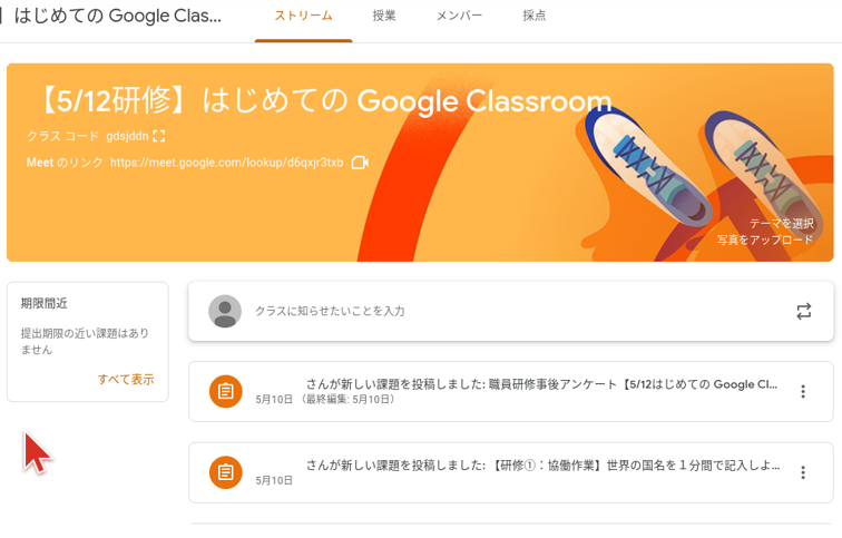 Google Classroom という教育ツールを活用するための研修が行われました。