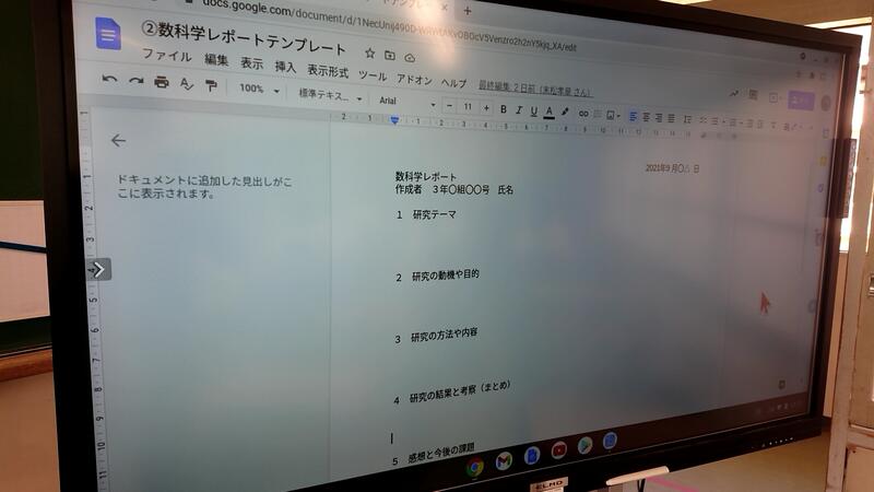 生徒は授業を受けながら、大事なことをChromebook上でまとめ、授業の最後にweb上で提出していました。