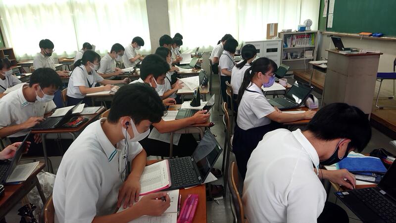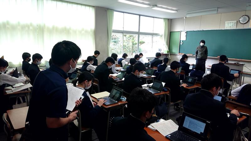 御船高校と水俣高校の先生方が一人一台端末の授業見学に来られました!