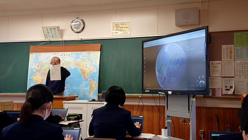 地学の授業ではタブレット端末と電子ペンが活用されています。