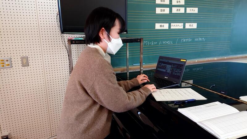 本日は、音楽の授業で使用する教材の開発を、授業担当者と進めていただきました。