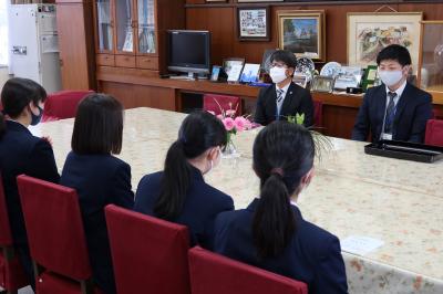 先日行われた天草宝島起業塾高校生コースで最優秀賞を受賞した3年生4人への表彰式が行われました。