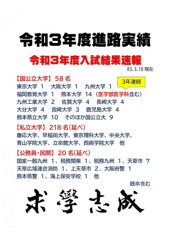 3月26日(金)、天草高校体育館において、高校入試合格者説明会がありました。