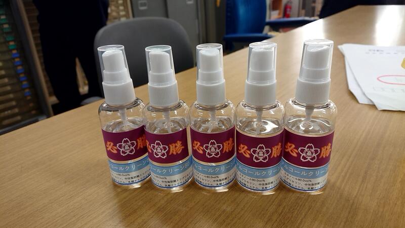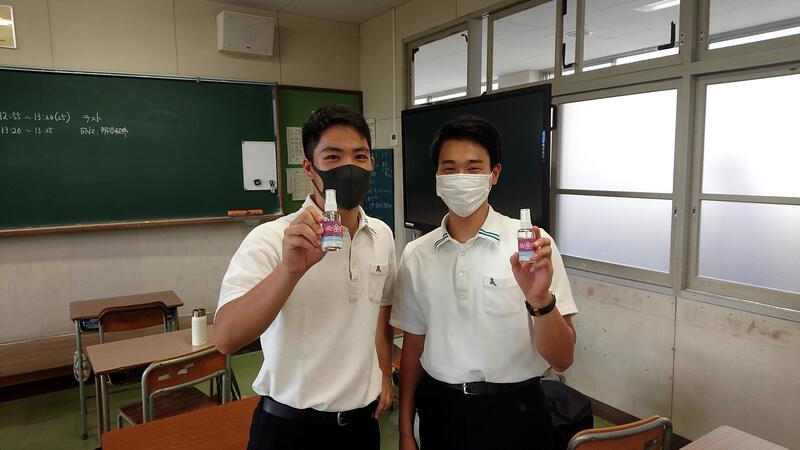 9月1日(水)、育友会から3年生全員に向けて携帯消毒液がプレゼントされました。