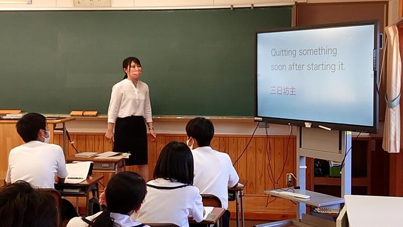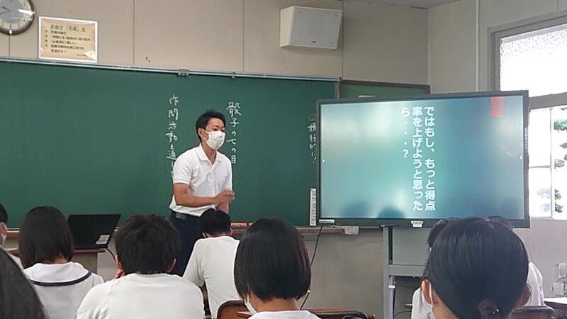 9月9日(木)、3年英語の授業では、自分で作成した英作文の Native Check を受ける授業が行われていました。