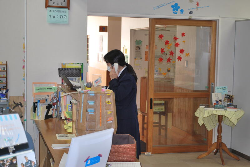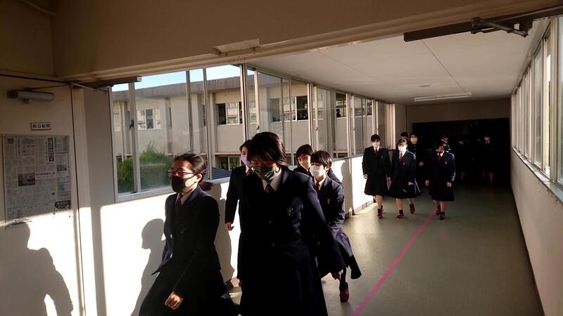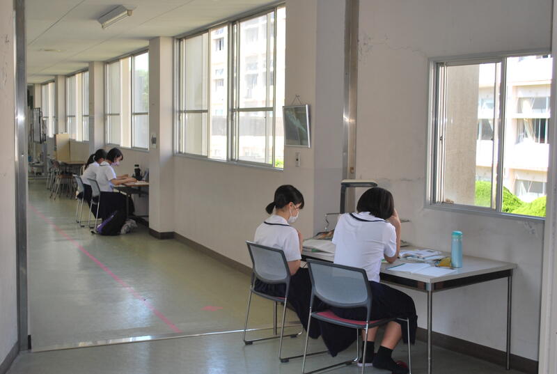 校舎内の動きを一方通行にして、3密を避ける対策をしています。