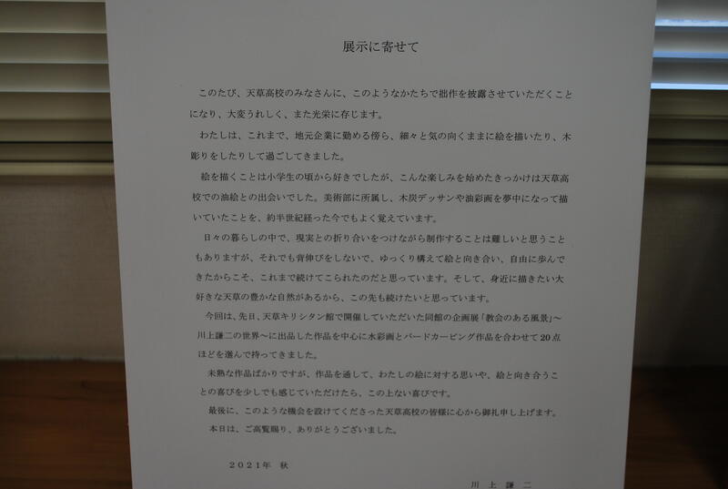 「変化の激しい時代に必要とされる“共感する力、イメージする力”は、地方である天草でこそ養うことができる。2学期は、五感で学び、物事の根幹を知る力を、ともに学び会うことで身につけて欲しい。」という話を期待を込めてされました。