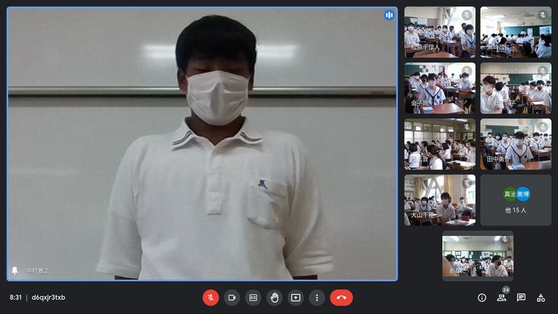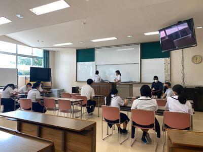はじめに、総合的な探究の時間の目的と、今後の流れについて担当の田上先生よりリモート形式で説明がありました。