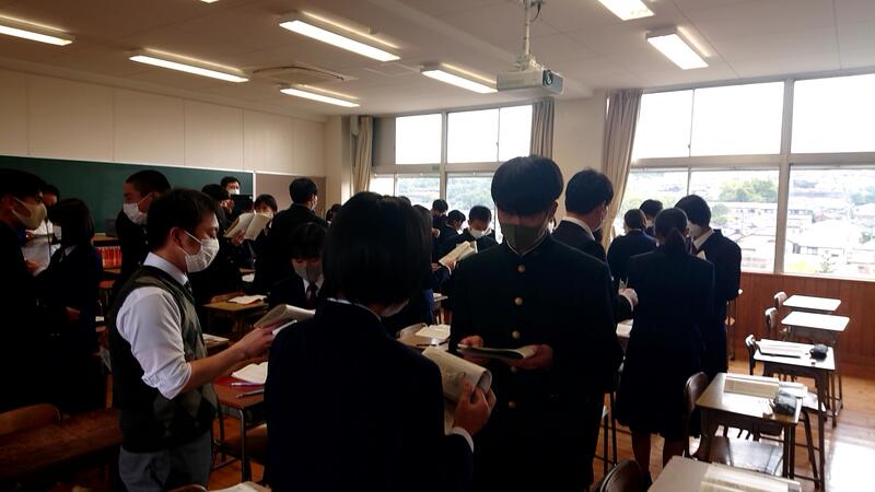 各クラスの対象者に、今年度の受験案内が配布され、進路指導部の瀧本先生がリモートで説明を行いました。