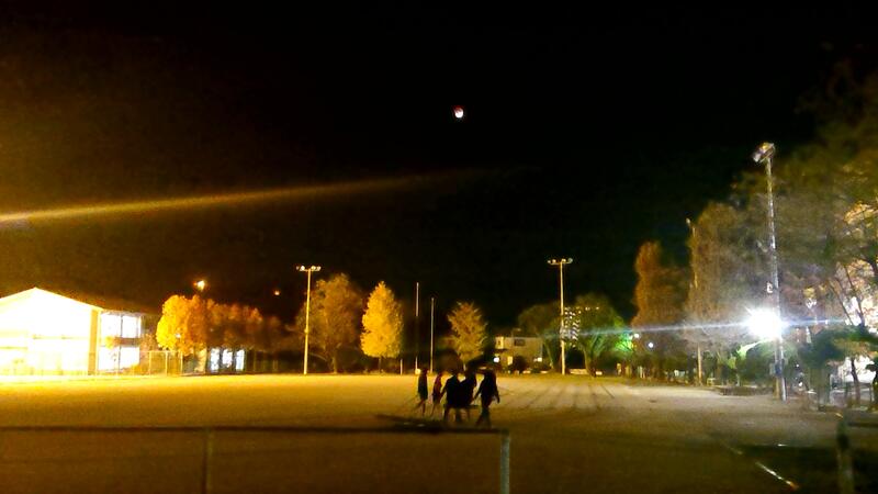 厨房からの火災を想定し、第3グラウンドに避難しました。