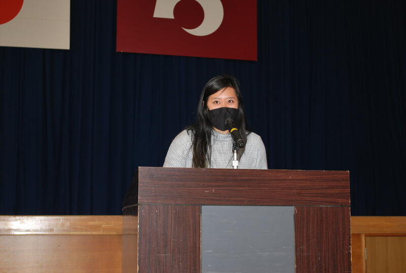 次に、文化広報委員長の濱崎さんから、文化祭の変更点や注意点が伝えられ、制限がある中、一度しかない青春の1ページを刻んでほしいという話がありました。