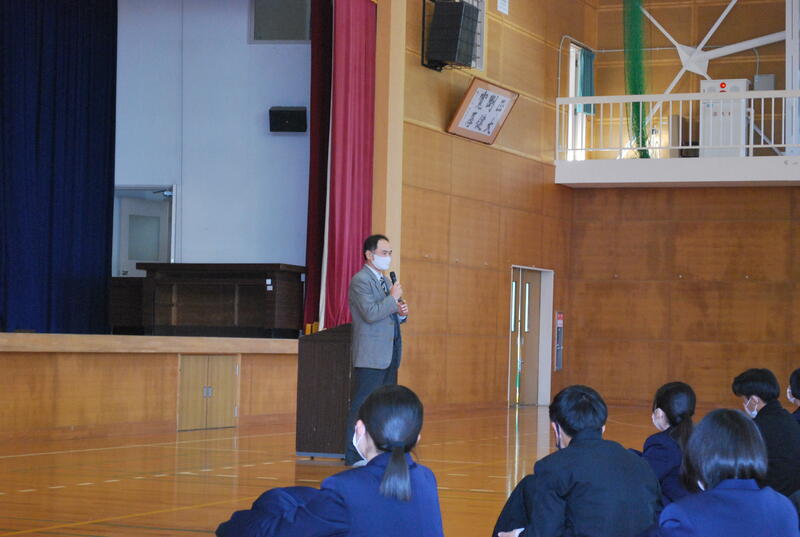 12月15日(水)、天草市民センターホールにおいて、2学年生徒を対象とした進路講演会が行われました。