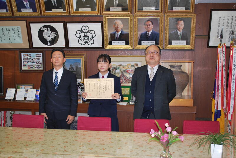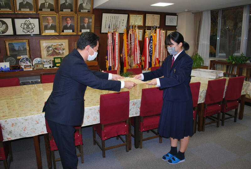 吹奏楽部のアンサンブルコンテスト上位入賞と、青少年読書感想文全国コンクール県審査入賞が表彰されました。