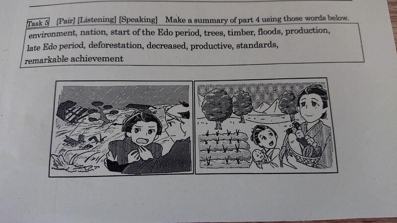 教科書の本文で習った江戸時代の前期と後期の変容を、複数のキーワードを用いて、自身の言葉に変換します。