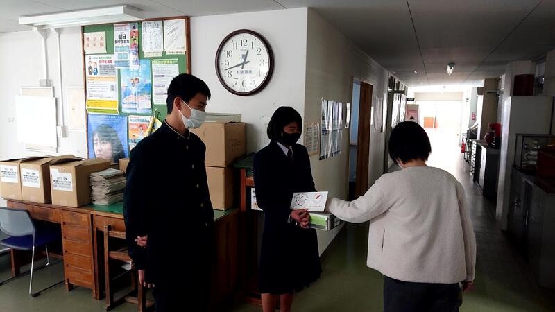 12月24日(金)、3年生の各クラスで行われたLHRの中で、全員の合格を祈願する「合格祈願もち」が配られました。