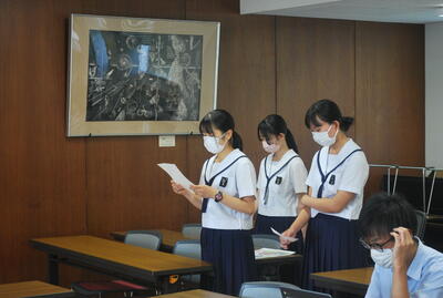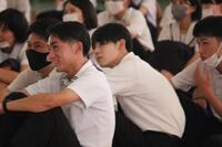 本校からは前生徒会長の杉尾さんが参加しました。彼は1年次から生徒会執行部として生徒会活動に熱心に取り組み、2年生からは生徒会長として、学校行事や校則の見直しを中心となって行ってきました。また、部活動では主将を務め、ボランティア活動にも積極的に参加するなど、多岐にわたって活躍してきました。