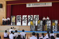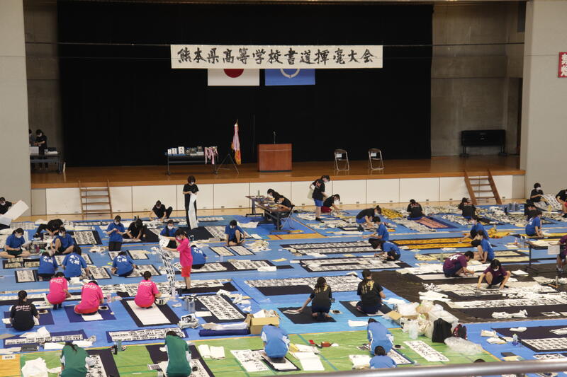 9月10日(土)宇土市民体育館にて、第28回熊本県高等学校揮毫大会が行われ、本校芸術部書道部門から、2年生の福田さん、1年生の長尾さん、松本さんの3名が出場しました。