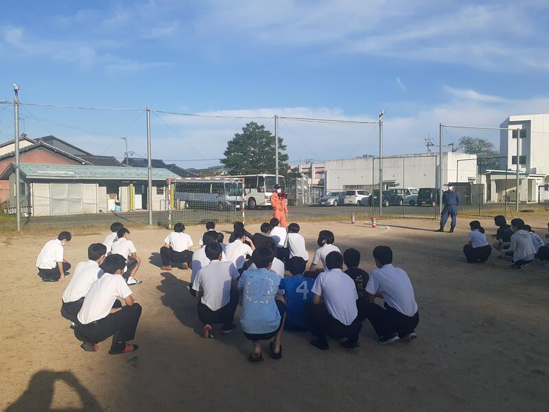 避難後に集合したグラウンドでは、天草市消防本部の方から緊張感をもった訓練であったことや、