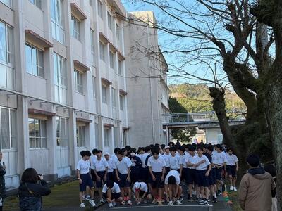 さあ、だれがこの天高伝統のマラソン大会のトップをとるのか、そして全員が無事走れるのか。2月で寒い日が続いていますが、天草高校は現在最高潮に盛り上がっております。みんな全力で走りきろうな!富岡先生との約束だぞ!