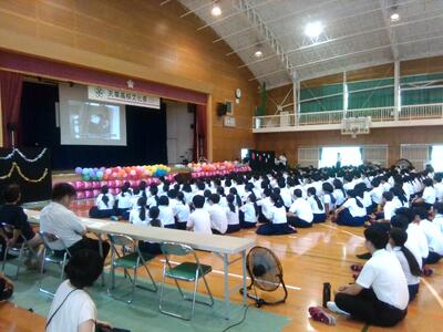 この日、60名の天高生が訪れたのは本渡南小学校。今年で創立150周年を迎えますイベント