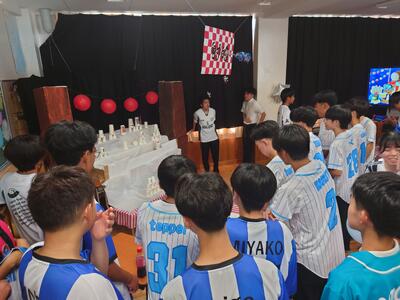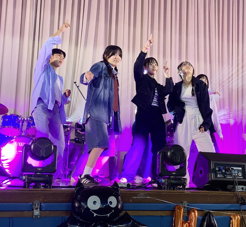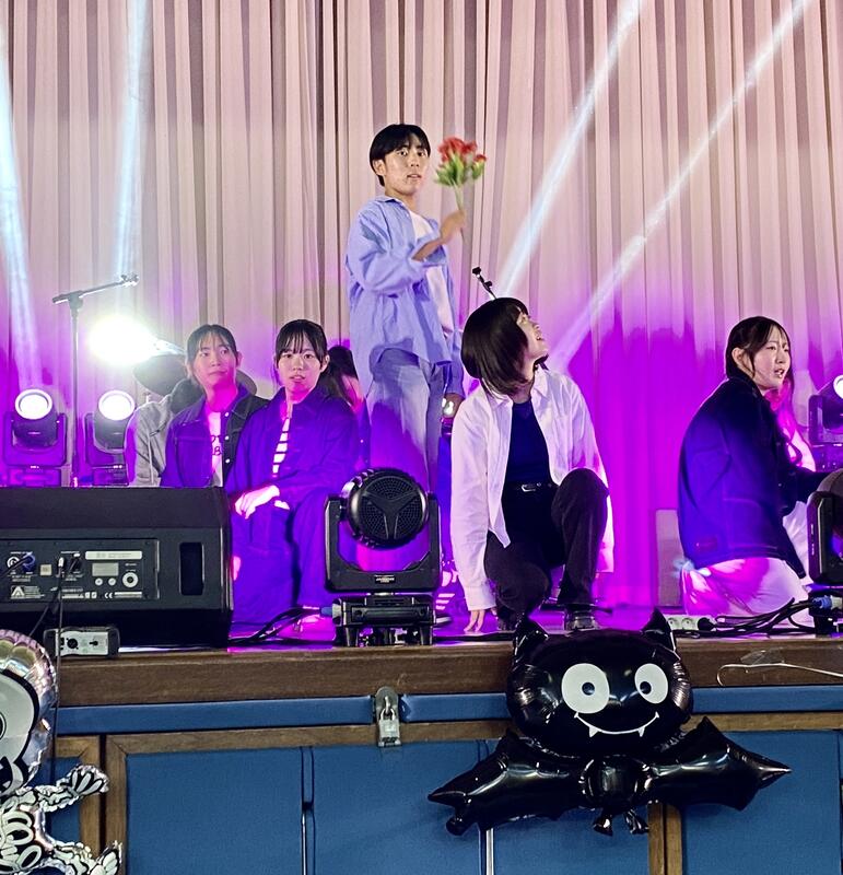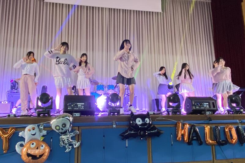 午後のステージでは吹奏楽部による演奏と職員の歌、ダンスがコラボレーションしました。普段は見られない先生方の姿に生徒もとても嬉しそうな様子でした。最後は放送委員会による文化祭準備の様子を映した動画上映で文化祭を締めくくりました。