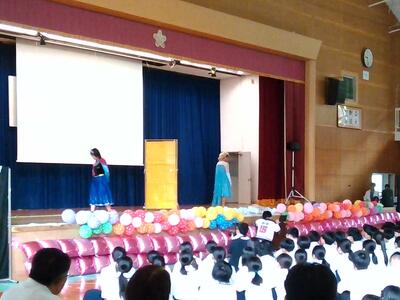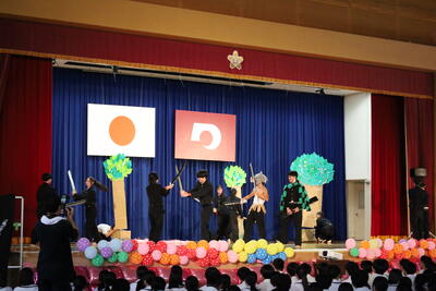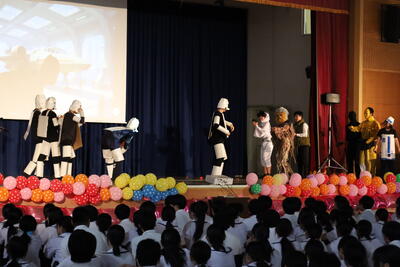 ステージでは、クラスによる劇「おおきなかぶ」「アナと雪の女王」「鬼滅の刃 十万山編」「スターウォーズ~銀河の絆~」の発表がありました。クラスの色を生かした劇やダンスが披露され、会場からも歓声や手拍子が起こり、盛り上がるステージとなりました。自由観覧時間には有志による演奏や歌、ダンスの発表もありました。
