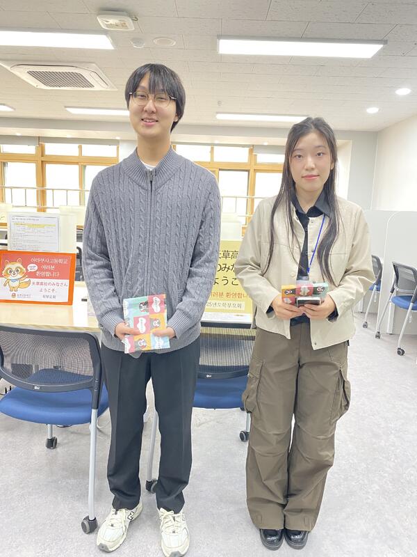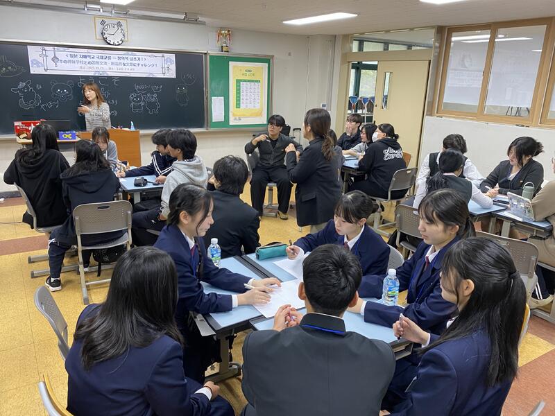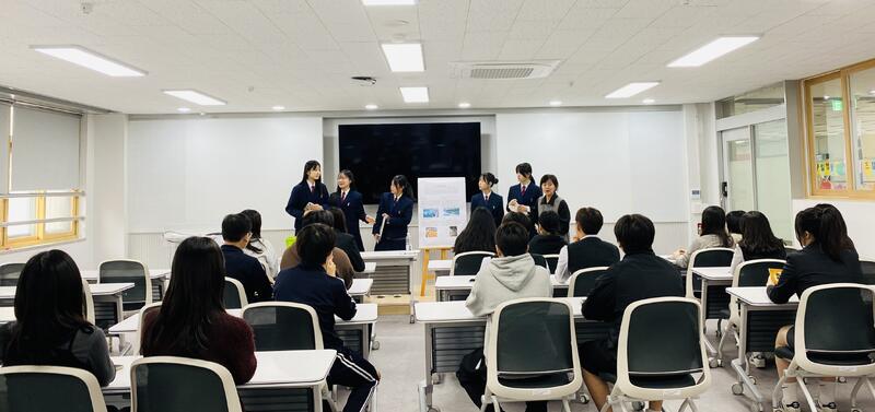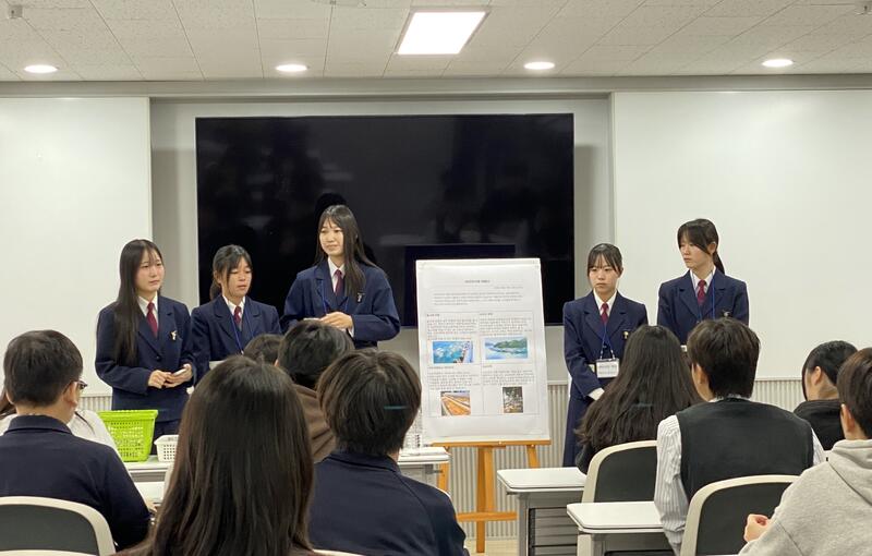 Now, they are working on two more performance assessments. In Logic and Expression, students are preparing to present their SSH research projects in English. For this assignment, they must make a slide and memorize a two-minute speech, which is quite a challenge! In English Communication, students are working in groups to create a Friendship skit based on the Kumamoto English Skit Contest guidelines. They have come up with many cute and creative ideas.