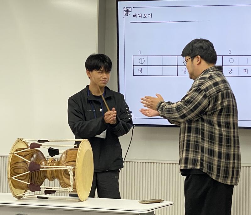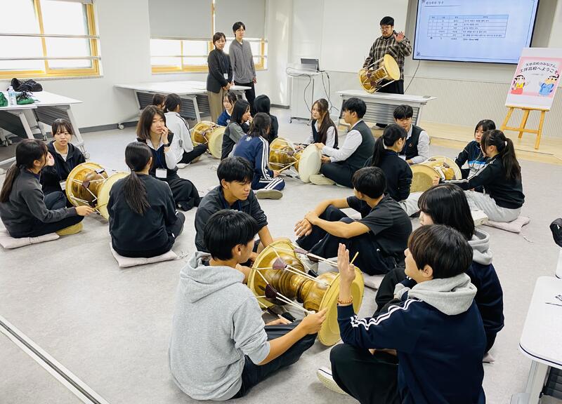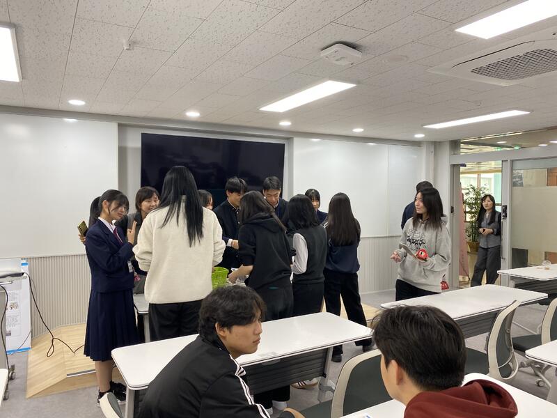 熊本大学教育学部の説明では、取得できる教員免許状や研究内容など教育学部にフォーカスした説明を詳しく聞くことができました。その後、「音楽と動画のどちらが感情に訴える効果があるか」というテーマで実際の授業を体験しました。子犬が遊んでいる映像に楽しい音楽・悲しい音楽をそれぞれつけることによって、映像の印象が大きく変わり、笑いが起きる場面もある楽しい体験となりました。