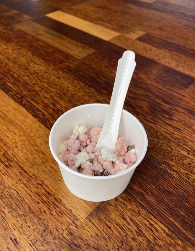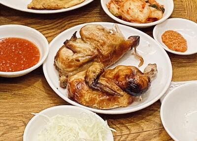 食品バザーでは、毎年恒例の定時制によるうどん販売、食物被服部のよるハニーバターチキン・ヤンニョムチキンの販売がありました。どちらも行列ができる人気店で、笑顔でいただくお客さんの姿がありました。