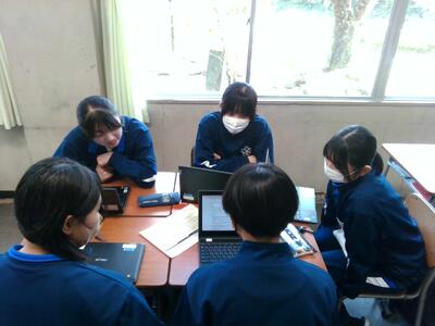 討論会に向けて、自身の研究成果から発信できる天草市への提案やアピールポイントを班員と協議しながらまとめていきました。
