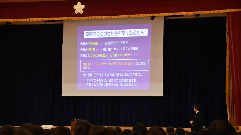 他にも、進路指導部から手帳を活用した「ゴール(目標)設定の技術」「タイムマネージメントの技術」、「振り返りの技術」についての話があり、生徒たちは早速、大切なことを手帳に記入しながら真剣に話を聞いていました。