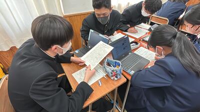 発表をするときの注意点は、声の大きさや聴衆を見て話すこと、話すスピードなどがあります。生徒たちは、練習時間に可能な限り原稿を見ずに伝える練習をしていました。本番は、紹介したい本や映画のパンフレット等を実際に見せながら話します。生徒たちは意欲的に挑戦してします。本番も楽しみです!