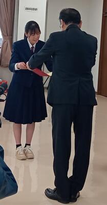 これは、学校活動において優秀な成績を収めた団体や、海外交流に対して交付される助成金を授与する式です。