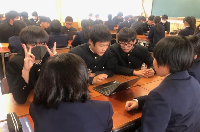 放課後の時間を利用して、韓国の土坪高校の高校生とオンラインで交流を行いました。