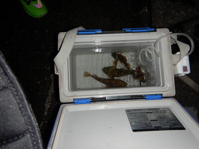 なかなか釣れずに困っていたところ、近くにいた釣り人からガラカブ4匹を分けていただきました。