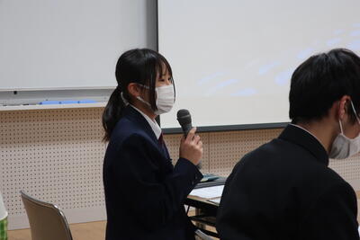 海洋プラスチック問題に関して意見交換が行われ、冒頭には科学部の研究発表も行われました。