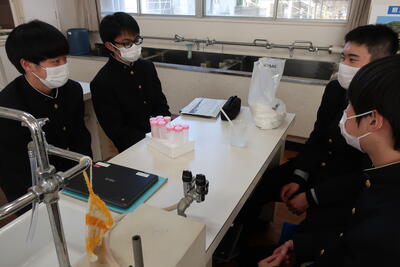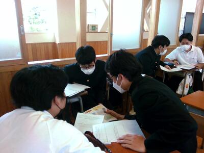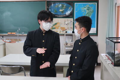 7限目にはASⅢのメンバーも加わり、地学室もますます活気づいてきました。ASⅢで行っている「魚糞」の継続研究を考えている班が先輩に助言をもらったり、「電磁誘導班」が物理室で活動している「波力発電班」の先輩に報告書を見てもらったりしています。みんなラストスパートがんばってください!