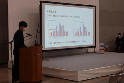 発表会では、基本的にポスターでの発表になりますが、いくつかの班がステージに立って口頭発表を行います。