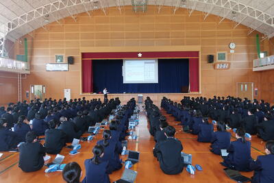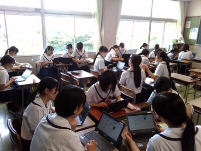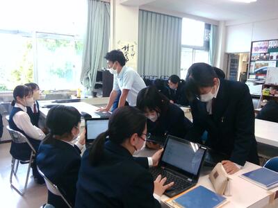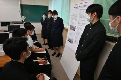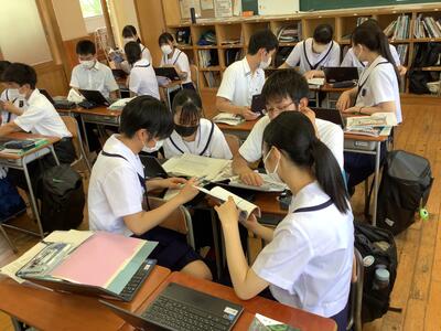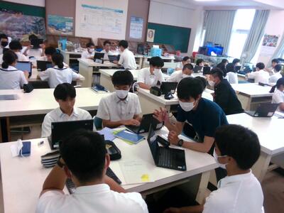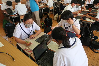 黙々と個人で取り組むクラス、担任の先生が生徒と対話してアイデアを引き出すクラス、友人と去年の研究などについて意見交換するクラスなど、クラスによって取り組み方は色々ですが、それぞれが天草の課題解決のための1歩を踏み出しました。中には、昨年取り組んだ研究を継続しようと考えている生徒もいるようです。自分の興味・関心のある分野で、天草に貢献できる研究ができるといいですね。みんなの想像力や実行力に期待しています!