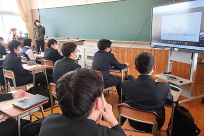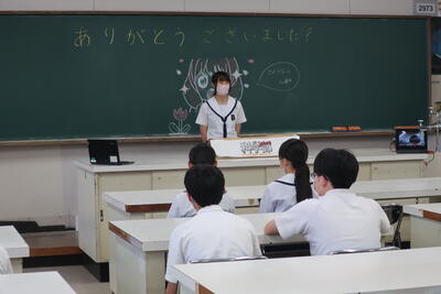 7限目は「天草と災害について〜天草の成り立ちと自然災害〜」をテーマに、熊本大学大学院最先端科学研究部地球環境科学分野教授の松田 博貴様に講義をいただきました。「天草の自然を知りどんな災害が起こり得るのかを知ることが大切」という言葉を聞き、生徒たちも自分ごととしてお話を聞いていました。