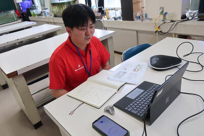 クラゲ班は、採取してきたクラゲ液を使って、赤潮に強い成分を抽出できないか検証しています。